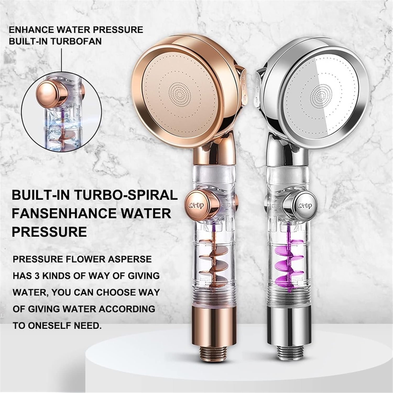 Su innovador sistema de turbina multiplica la potencia del caudal, brindándote un chorro firme y envolvente desde el primer uso. Ideal para hogares con baja presión, este cabezal transforma tu rutina en un momento de bienestar.